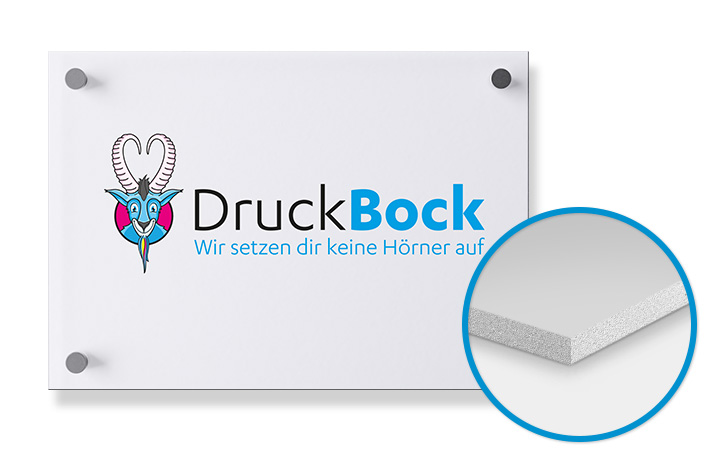 Hartschaumplatten sind sehr leicht und kostengünstig. Ideal für Ausstellungen, Messen oder begrenzt im Aussenbereich. Wir bedrucken die Schilder einseitig im UV-Direktdruck.